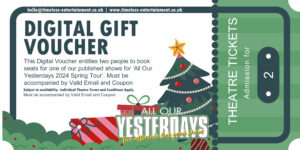 An ‘All Our Yesterdays’ gift voucher is a great present for friends, family, partner or parent. Not only a great gift but a discounted ticket price too. Each £40 voucher is valid for two tickets at any of our venues.
